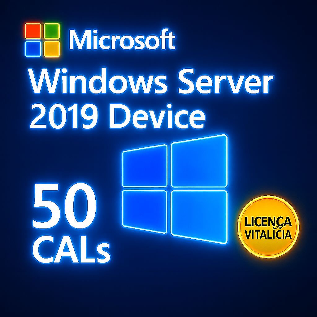 Essas licenças não substituem a licença do Windows Server — é necessário já ter o Windows Server 2019 instalado e ativado. As Device CALs apenas concedem permissão para dispositivos adicionais acessarem o servidor legalmente.